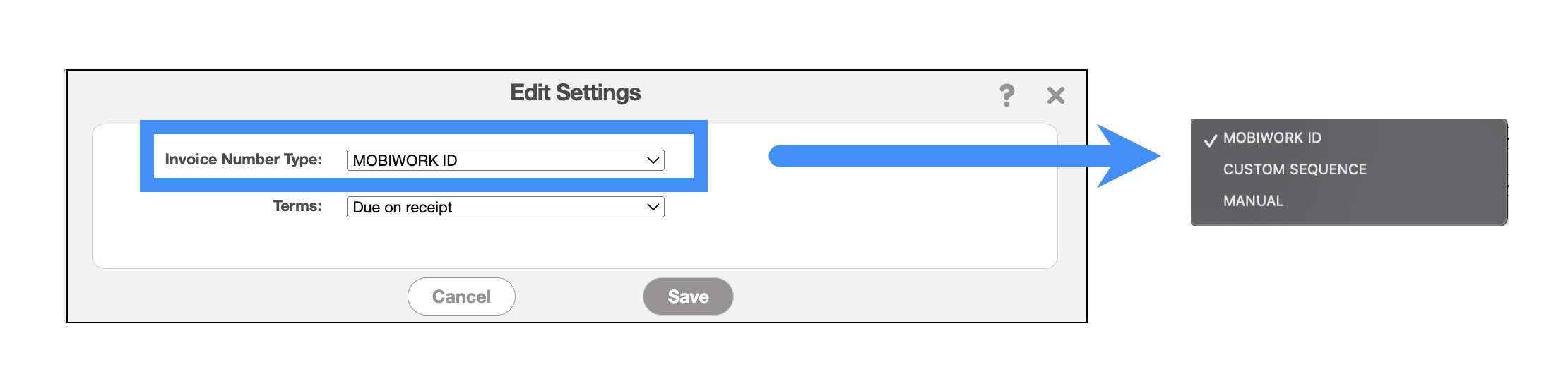 You can update the way that MobiWork keeps tracks of invoices through your Invoice Settings page.