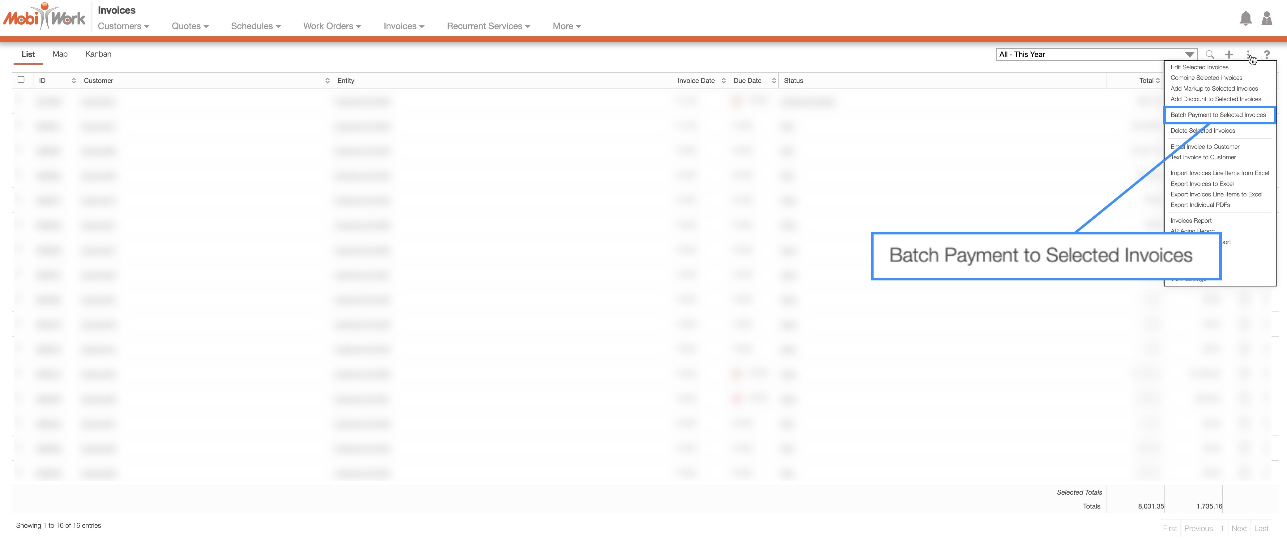 MobiWork will allow you to issue batch payments to multiple customers simultaneously. To issue a batch payment, please ensure you have a payment connector attached to your MobiWork account. Please see the Connectors Framework page, for instructions on how to add a payment connector to your account.