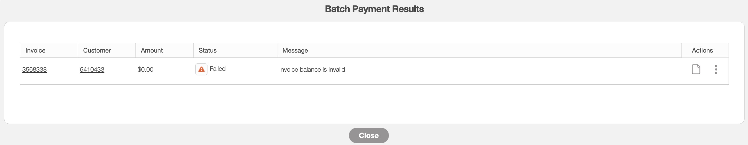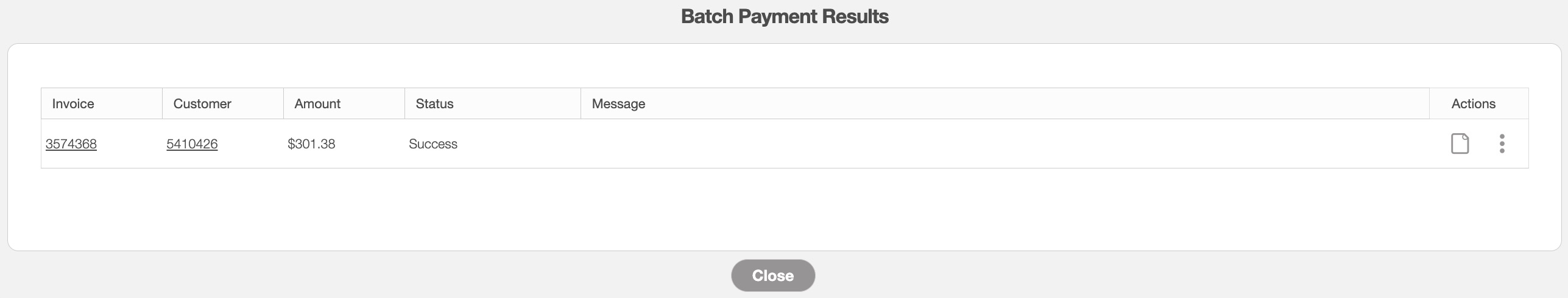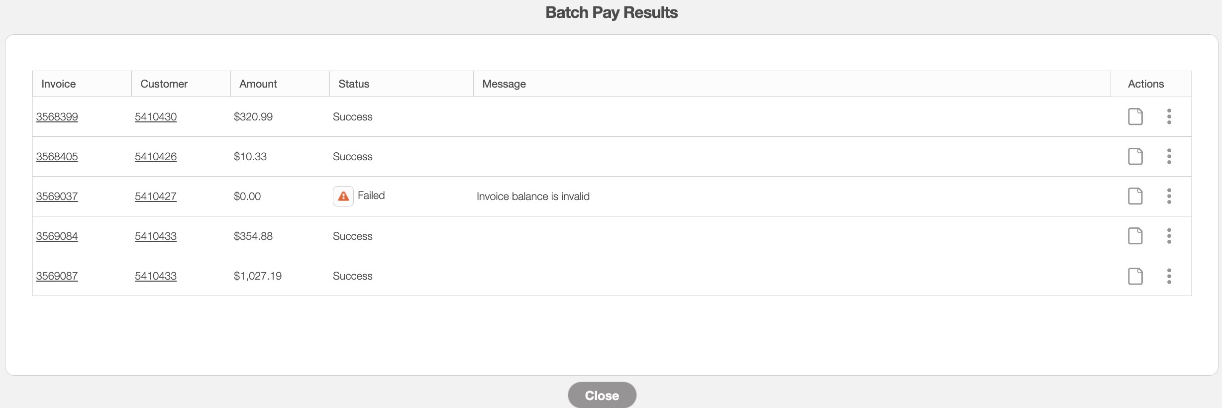 The Batch Pay pop-up window will then appear, displaying the results of the batch payment process: