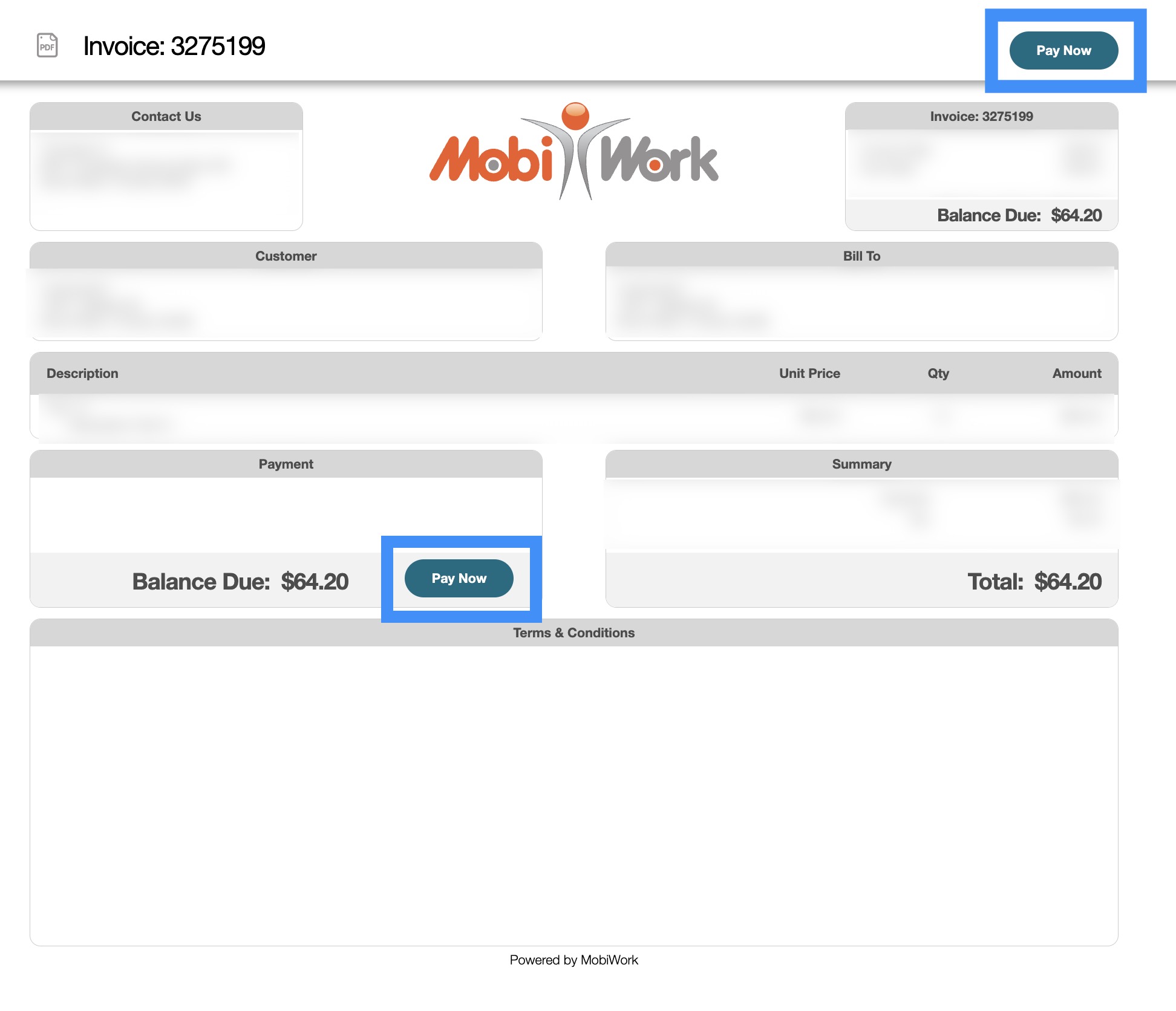 The following sections will highlight common questions associated with the customer portal and payments in MobiWork.