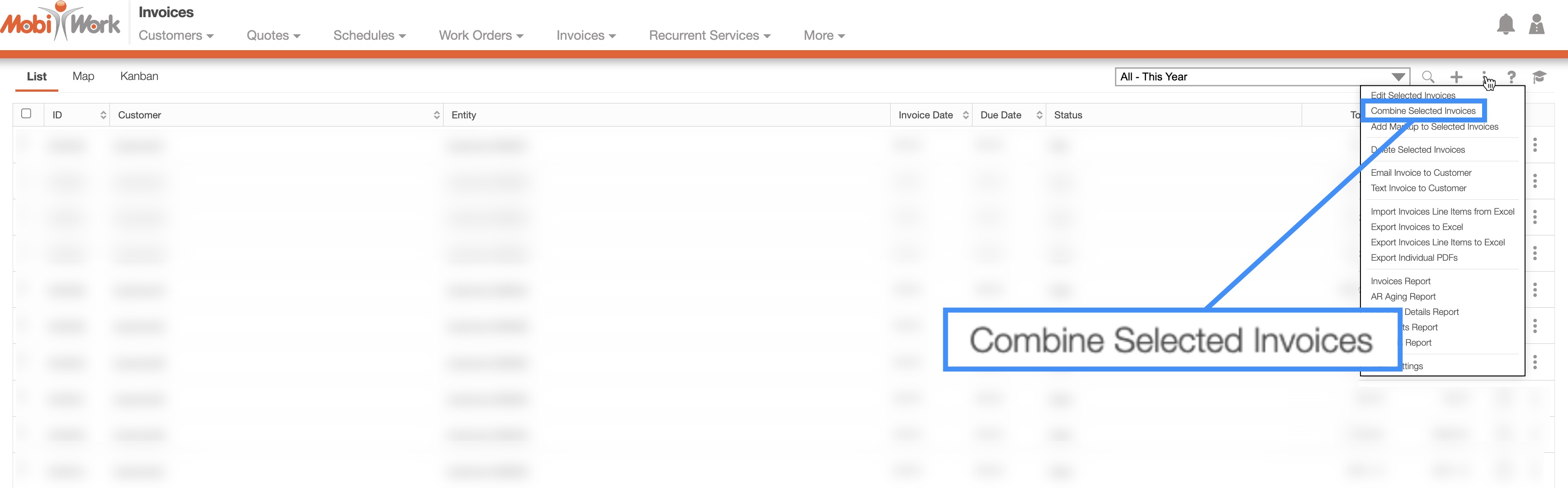 If the deposit has not been captured by the time the job is completed, we recommend combining the two invoices into one with the "Combine Selected Invoices" feature. For more information about how to combine invoices, please see the Combine Multiple Invoices in One section: