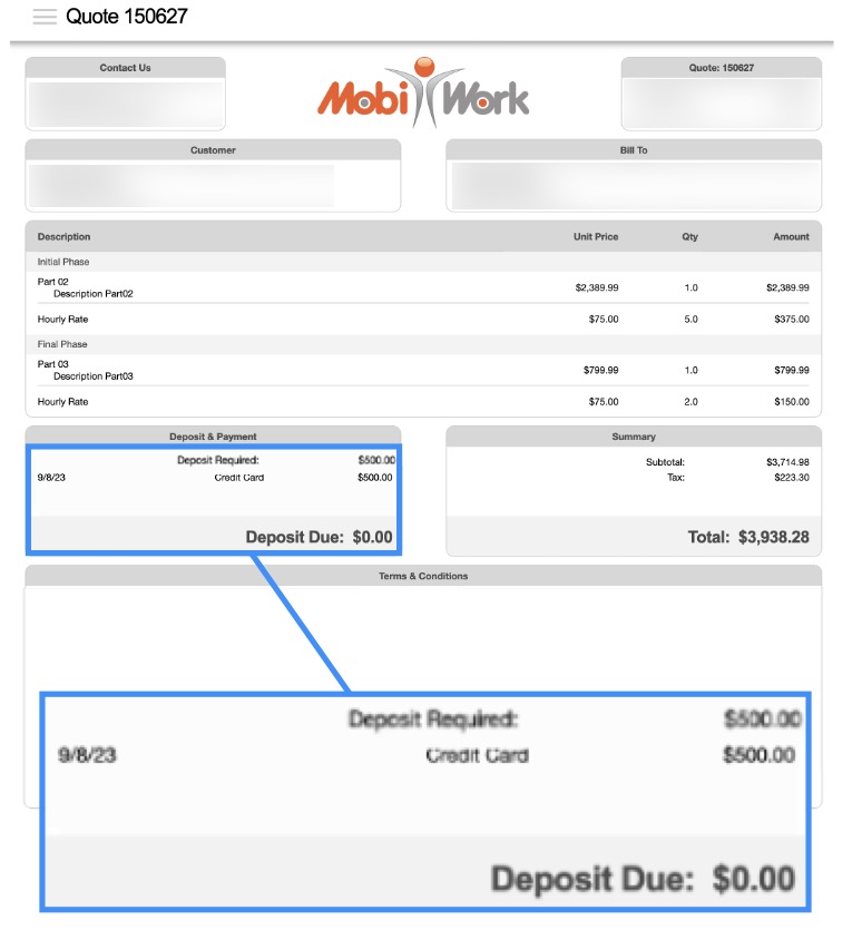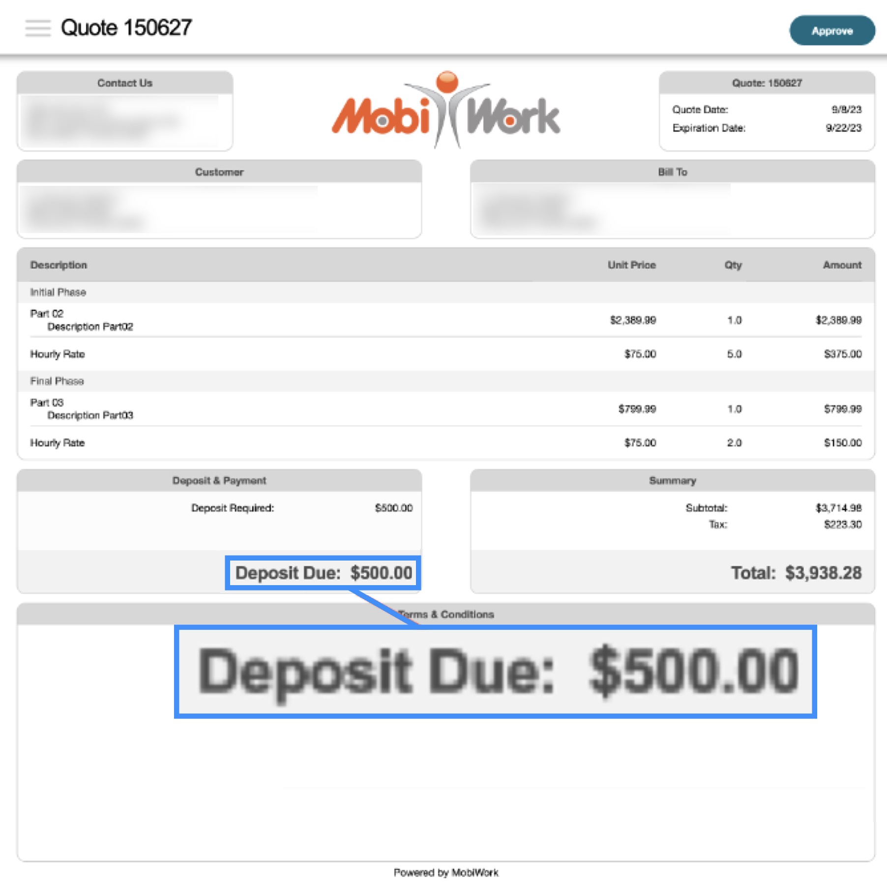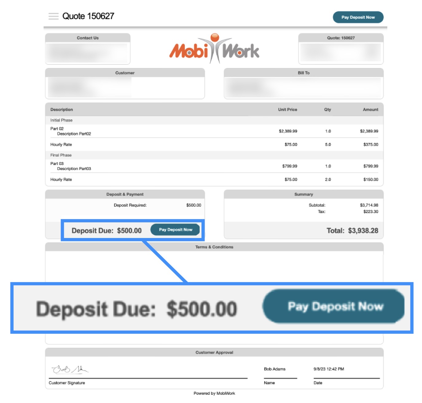 The following steps will highlight how to create a quote deposit in MobiWork.
