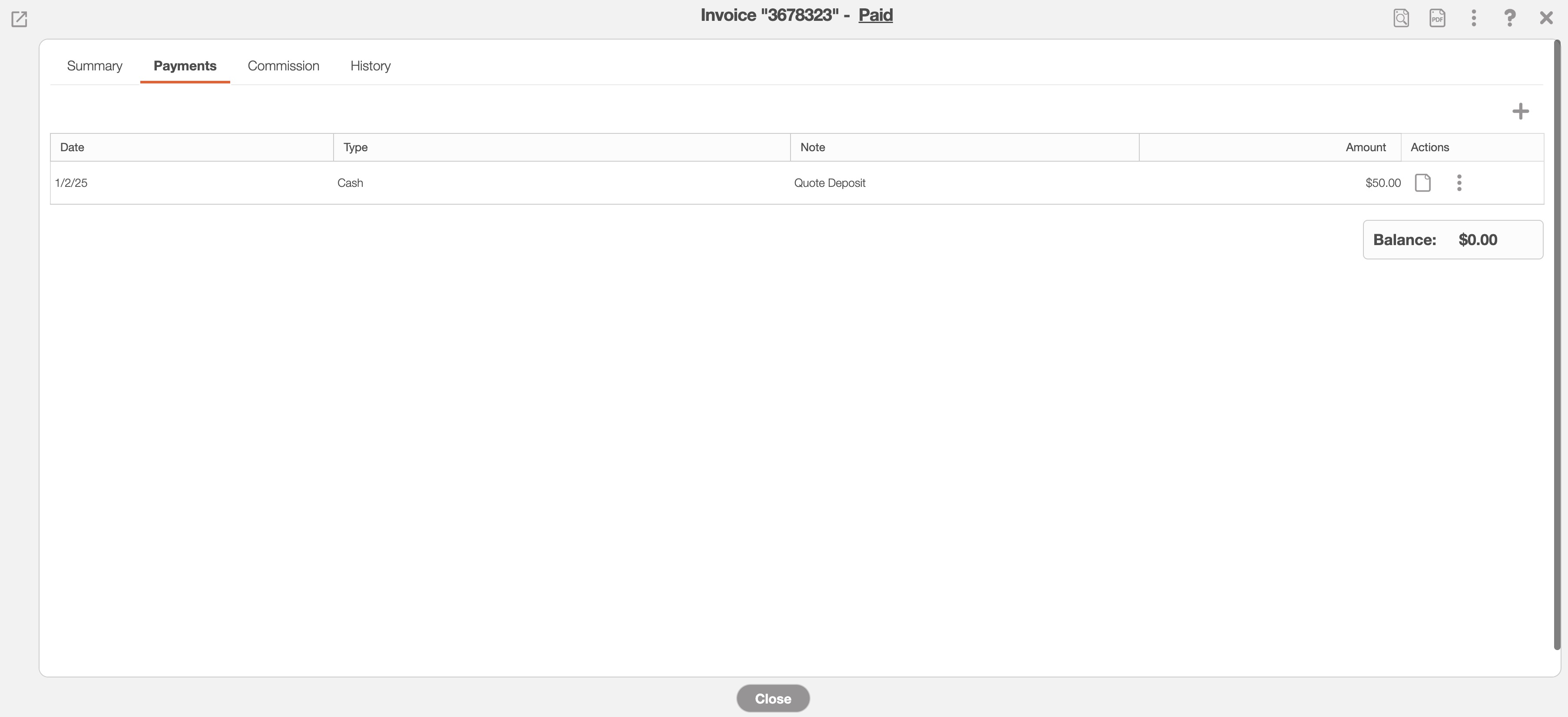 The balance, status of the quote, and corresponding invoice deposit will then be updated accordingly, and the payment will be listed in the quote Web or PDF view.