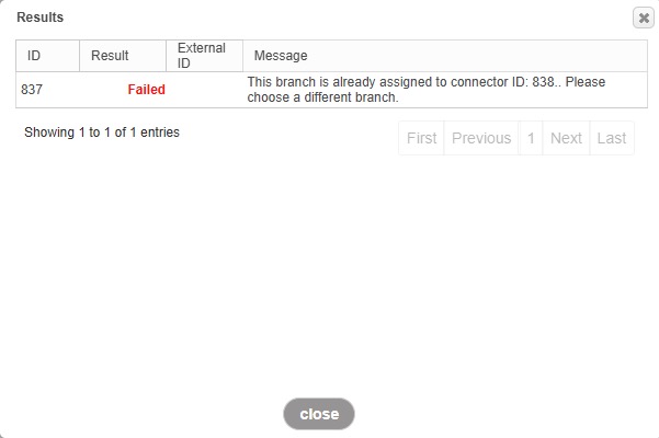 If a branch is already associated with another QuickBooks connector, you will receive the following error when you try to sync your data to QuickBooks Online: