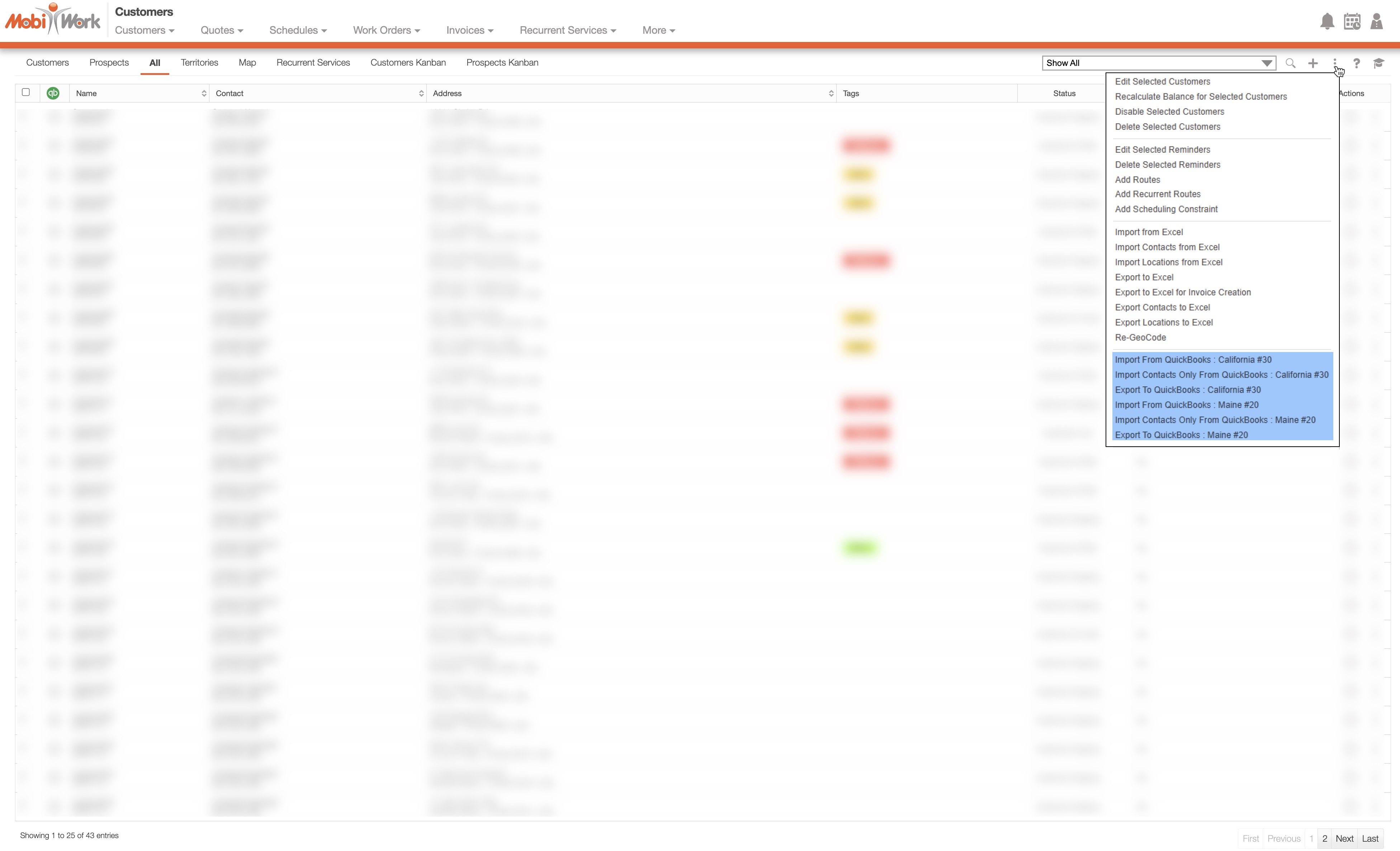 You can also configure the QuickBooks Online connector to operate in export-only mode, thus preventing any imports into MobiWork.