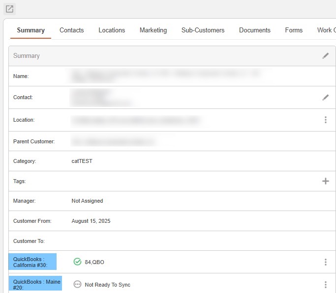 Once the branches and their corresponding QuickBooks Online connectors are enabled, you will have the option to sync the entity to the QuickBooks connector of your choice from the entity List or View pages: