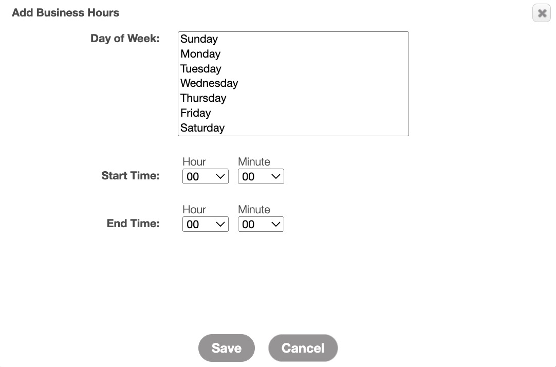Once you are back on the "Settings" tab, there will now be a Plus Sign icon in the "Business Hours" panel; click on the Plus Sign icon: