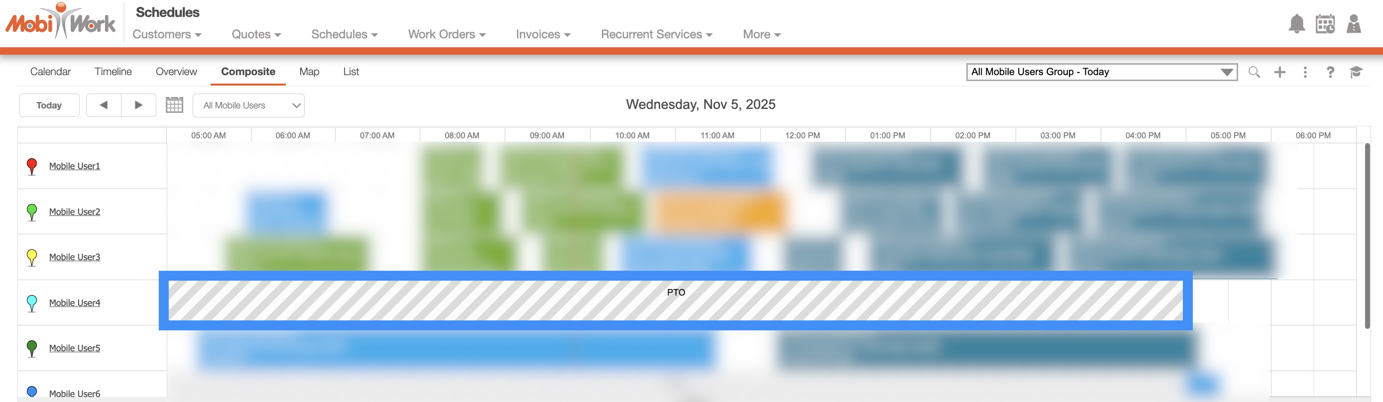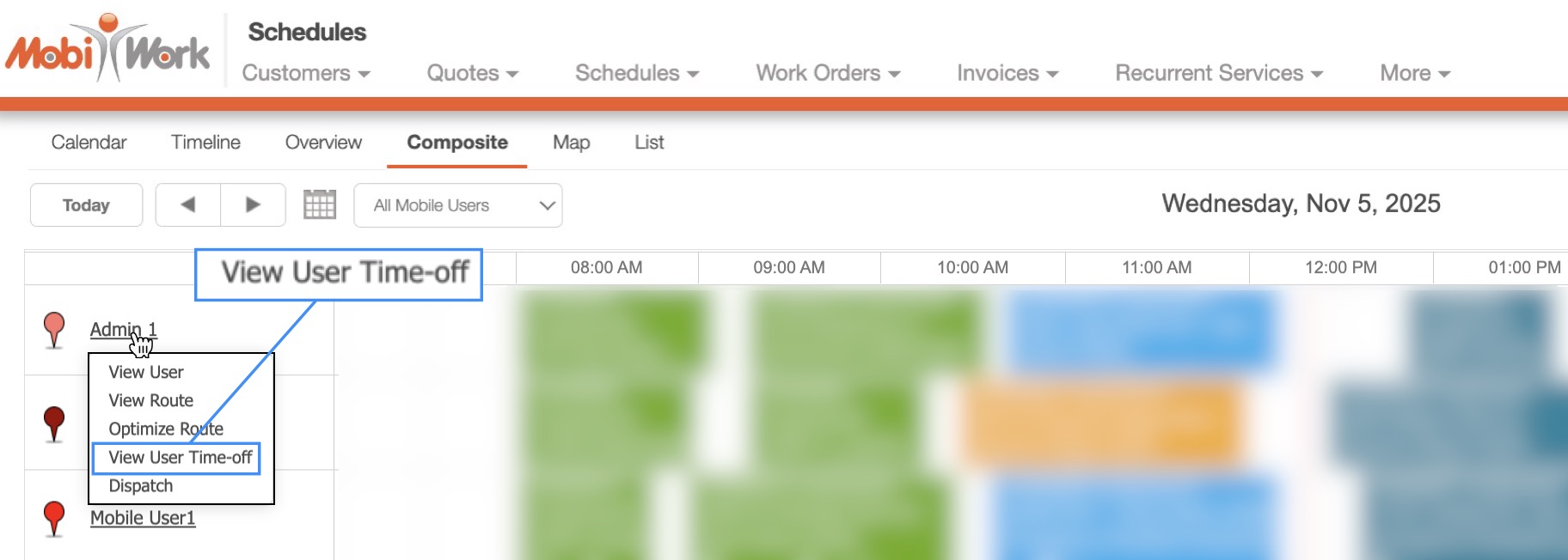 You can input your time off in the MobiWork app, through the Schedule feature on your device.