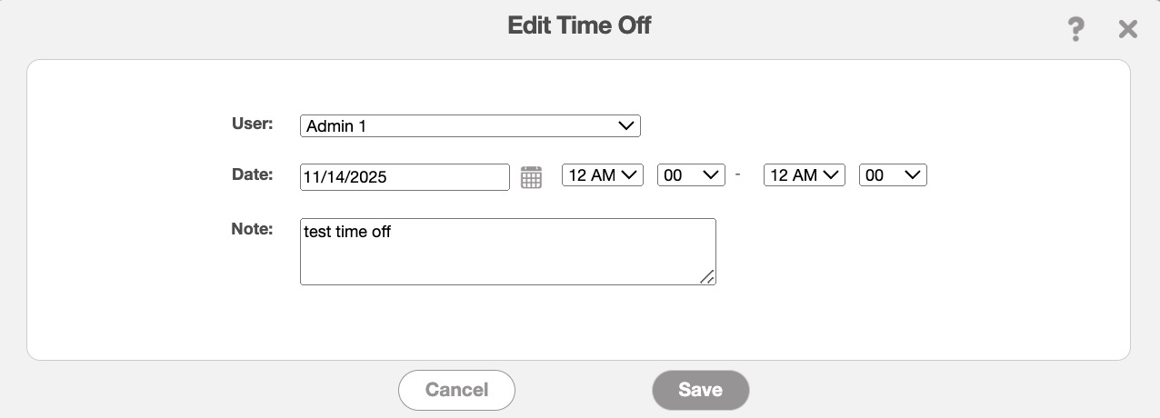 The Edit Time Off pop-up window will then appear: