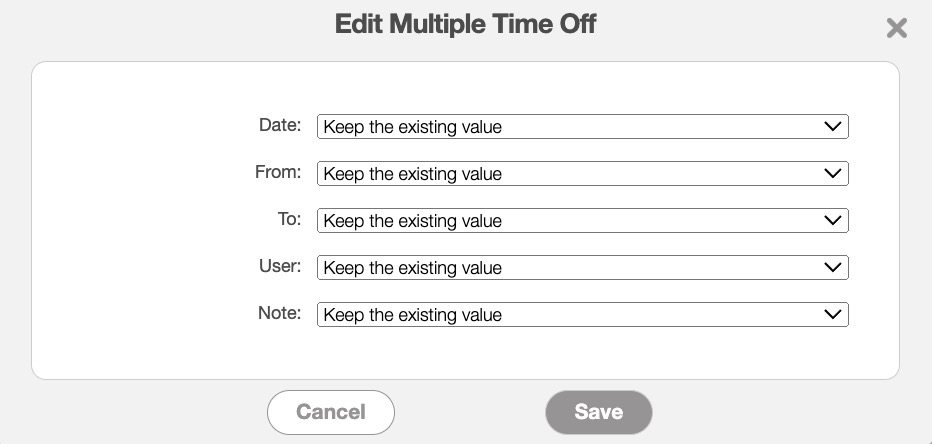 The Edit Multiple Time Off pop-up window will then appear: