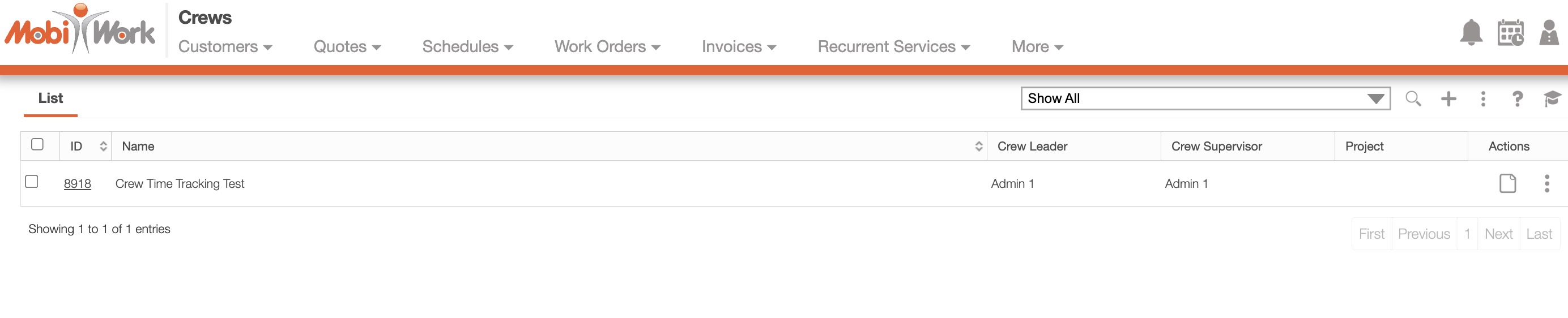 In order for the crew time tracking feature to be utilize for work orders, you will first need to ensure that you have crews set up within your system. Once the makeup of your crews are finalized, you will be able to use them for dispatching and by extension crew time tracking: