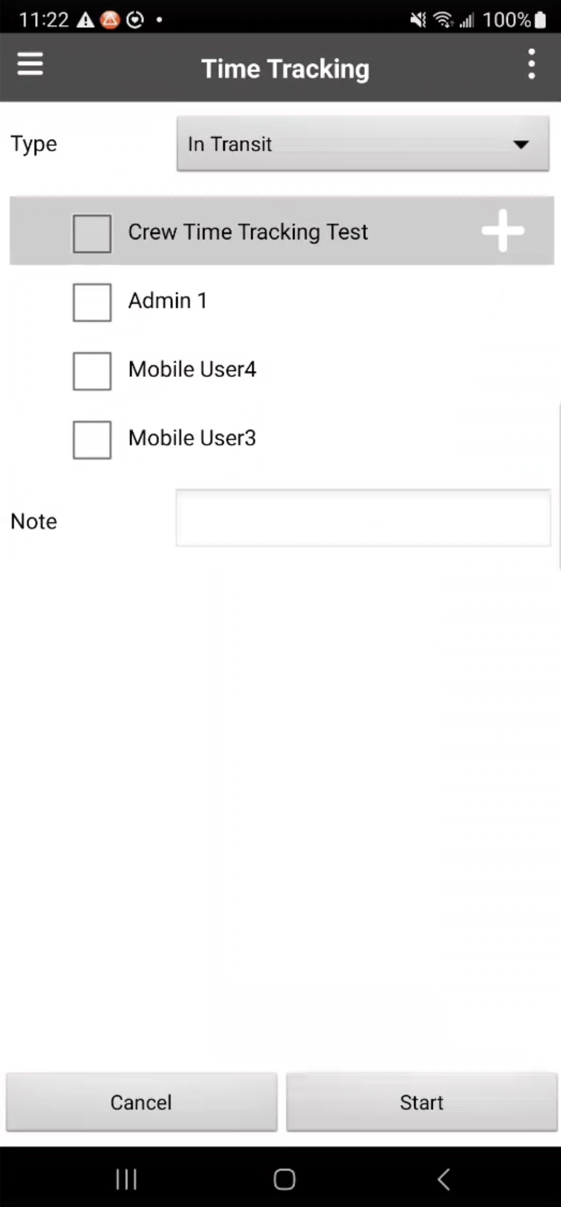 Note- In the "Note" section, the crew leader will be able to enter additional details regarding the crew's time tracking.