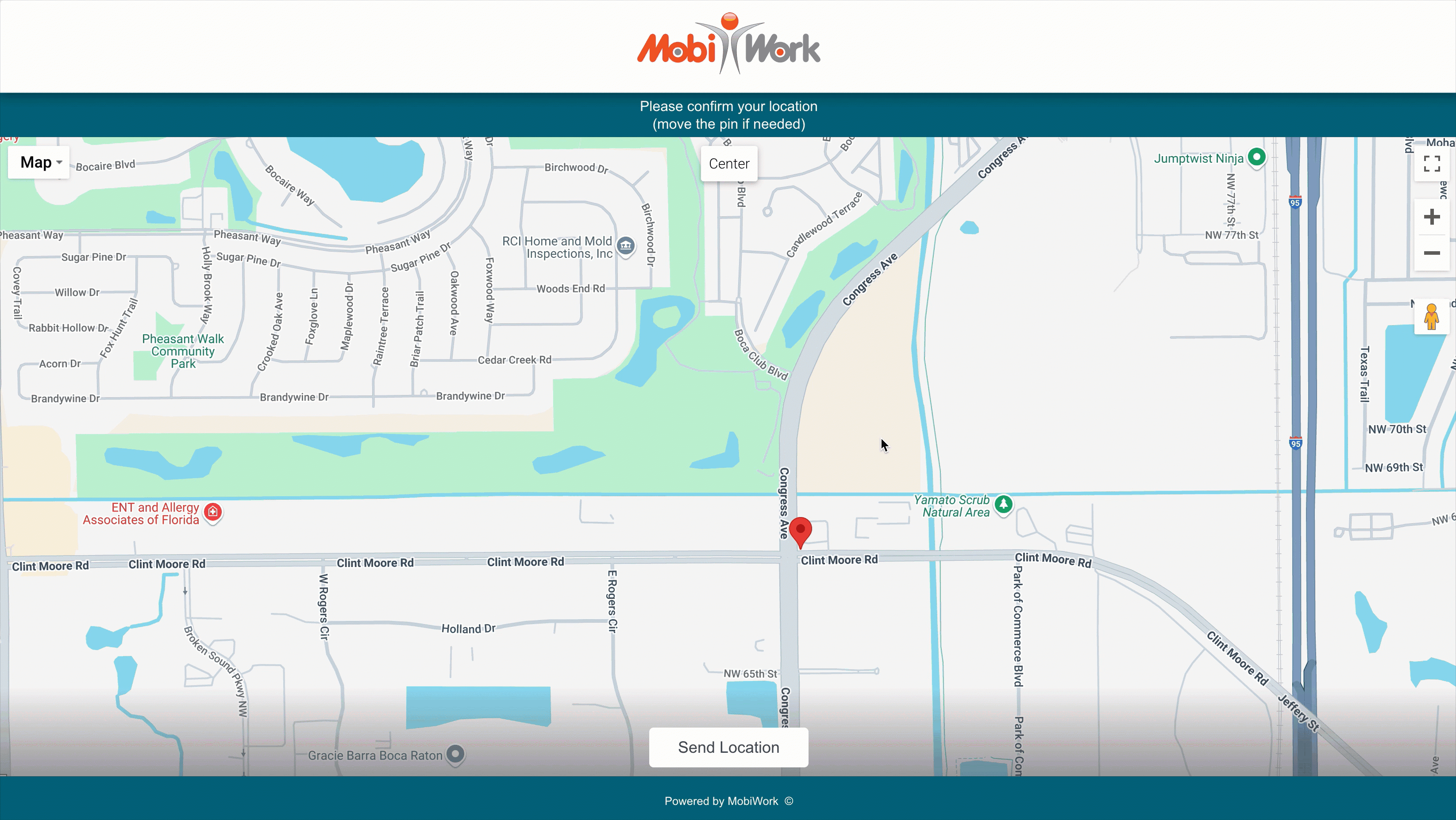 The customer will then receive a message prompting them to share their location. Once they accept, their location will be shared. They can also move the pin on their device for improved accuracy: