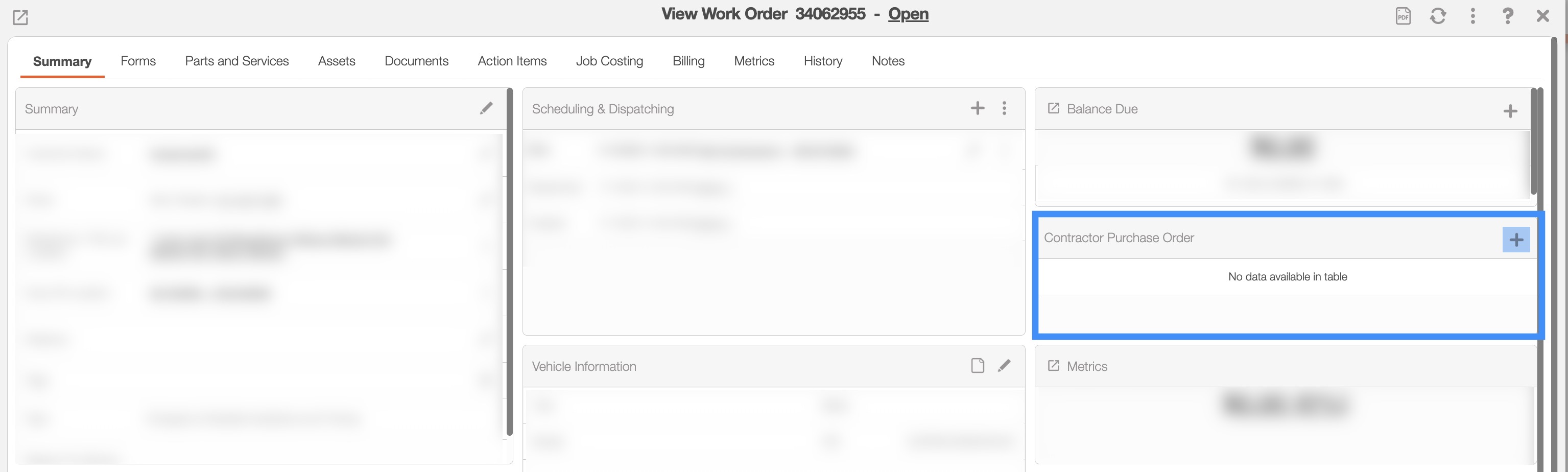 In the "Contractor Purchase Order" panel, click on the Plus Sign button.