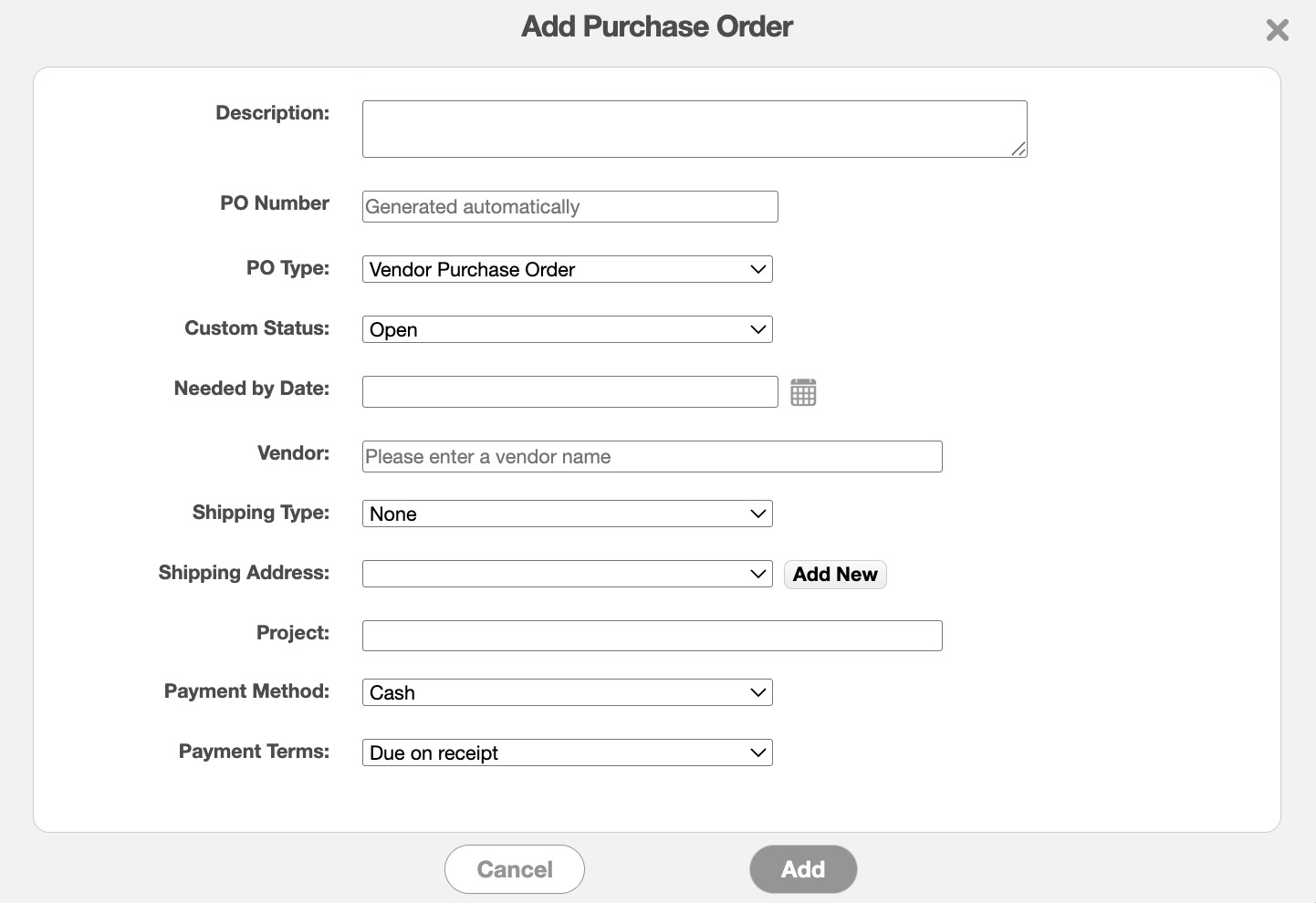 When you are done filling in the required fields you can choose to click either the Add button or the Add & Dispatch button.