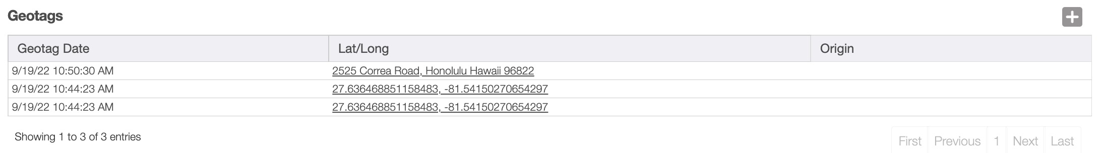 | "Geotag Date" | The date and time that the geotags for the asset was added to the tab |