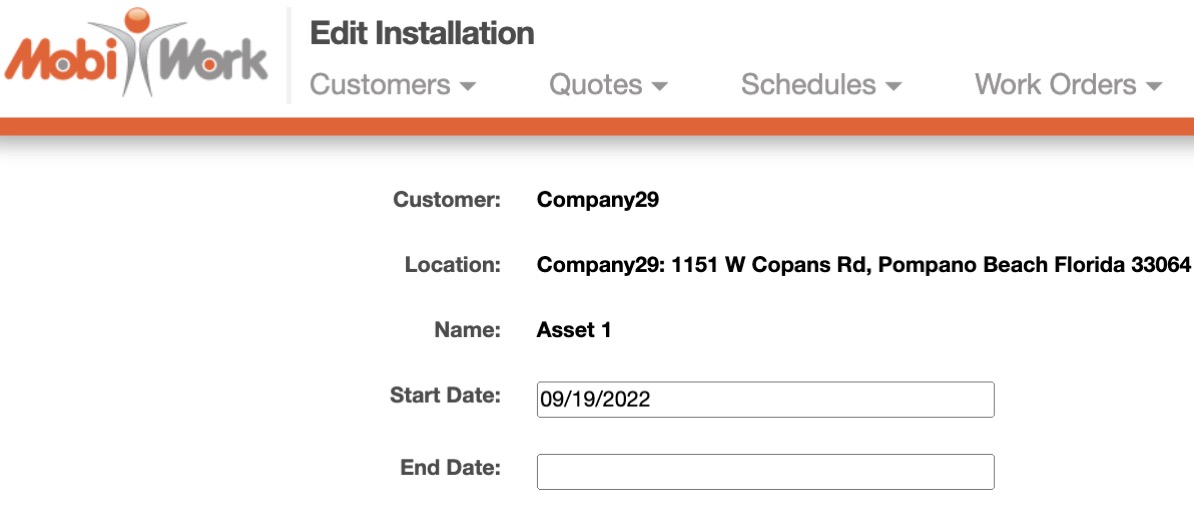 | "End Date" | The end date of the installation (when the asset is dissembled) |