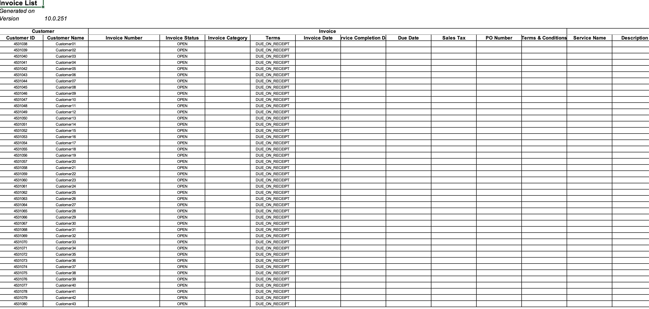 Export to Excel for Invoice Creation