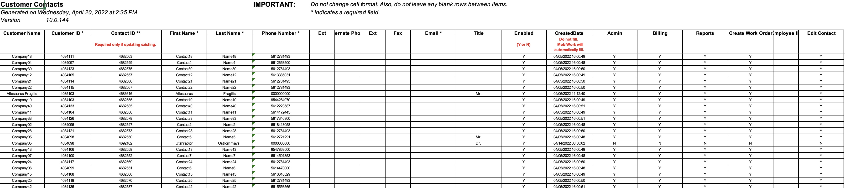By selecting the "Export Locations to Excel" option, you will only be exporting the locations, addresses, location names, etc. of your customer and prospect contacts: