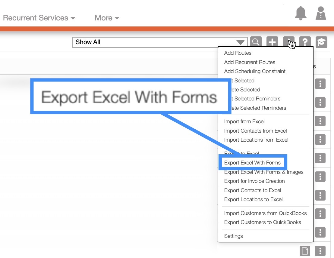 Click on the More Actions button and from the drop-down menu select the "Export to Excel with Forms" option: