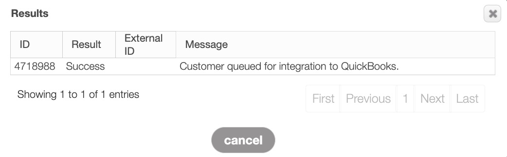 The selected customer will then be registered to be exported to QuickBooks Desktop upon the next sync. You will receive a pop-up window confirming the listed customer is registered for syncing: