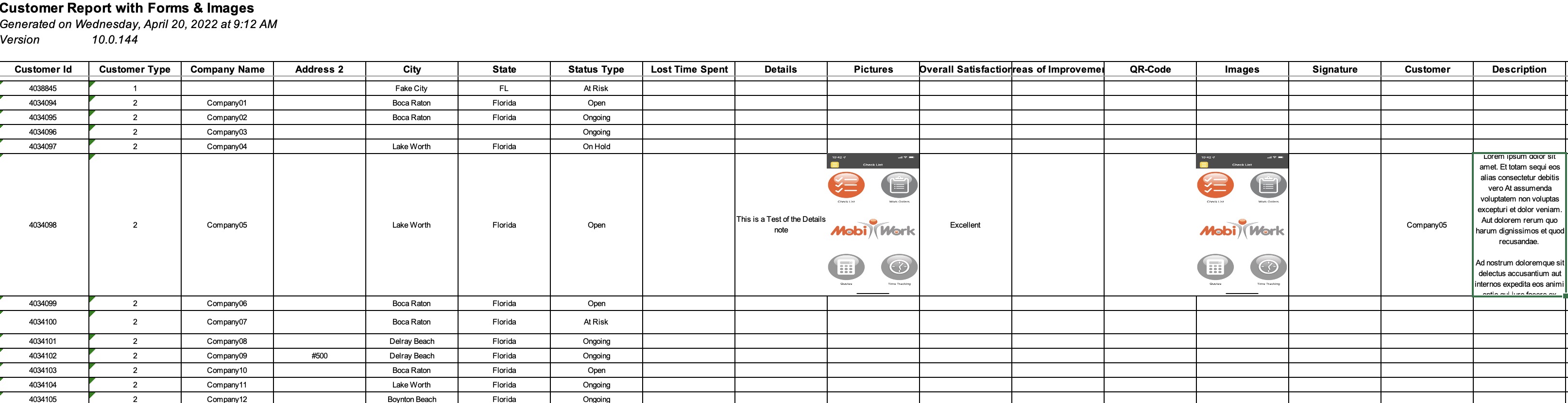 By using the "Export to Excel with Forms & Images" option, your Excel file will display the data from the Forms tab; any pictures associated with a form will also display as an image: