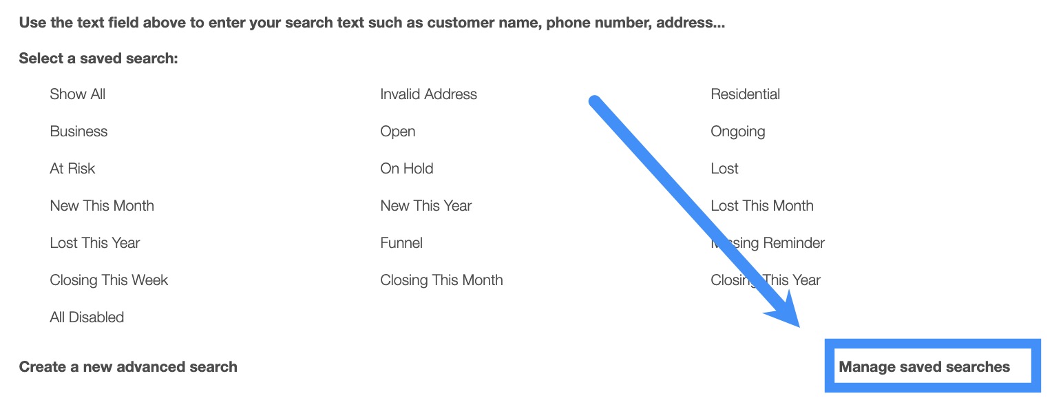 - Manage Saved Searches