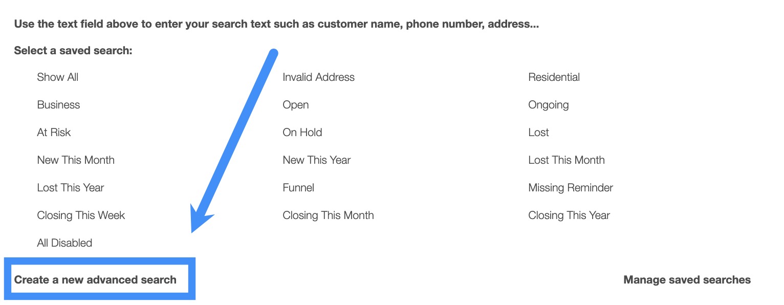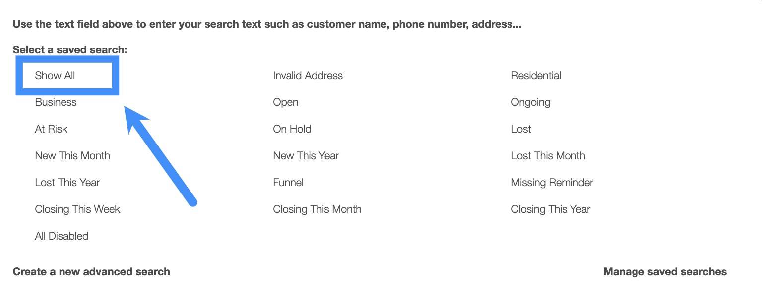 "Open"- Will display all customers or prospects that have an "Open" status.