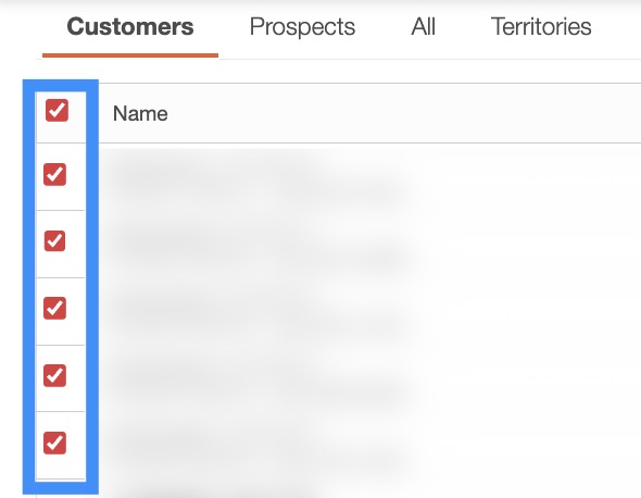 The checkboxes (multiple selection area) found to the left of the "Name" column, will allow you to select either one or multiple recurrent customers to manage, edit, remove, etc.: