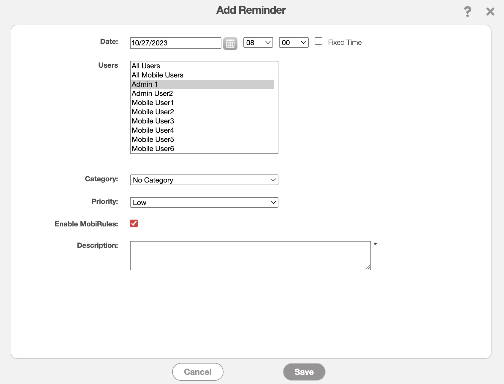 Reminders are for your MobiWork users and will allow you to set up notifications for them to accomplish certain tasks (e.g., reach out to the customer) by a specified date and time.