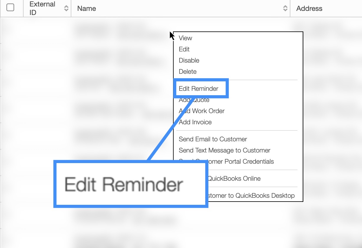 - Note: Please note that if a customer already has a reminder, the "Add Reminder" option will be replaced with the "Edit Reminder" option. If a customer does not have a reminder, then the "Add Reminder" option will appear.