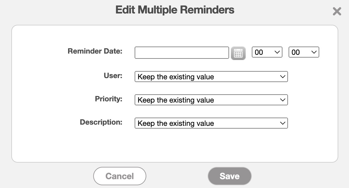 After selecting this option, the Edit Multiple Reminders pop-up window will appear: