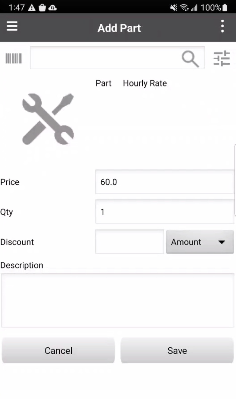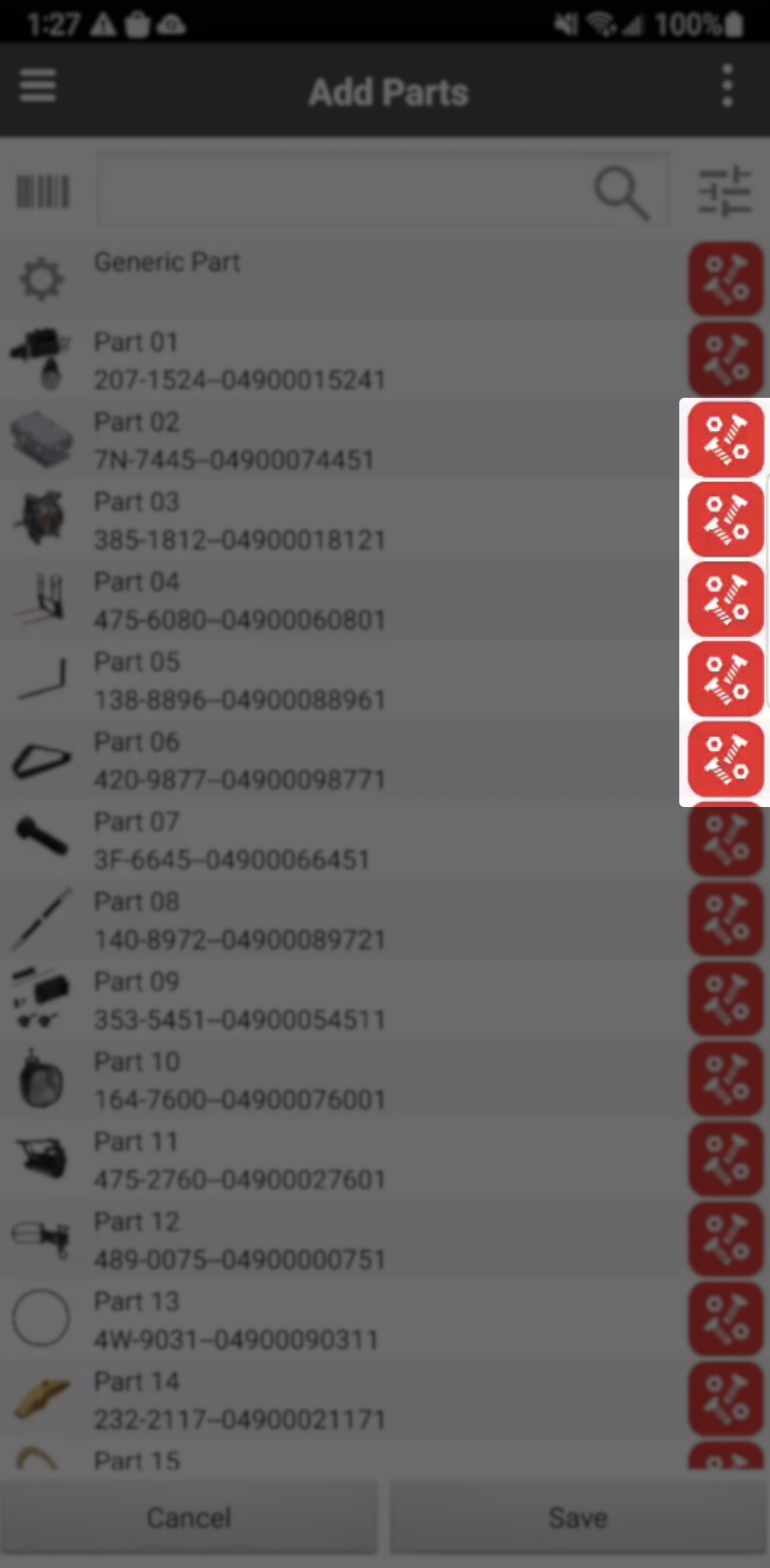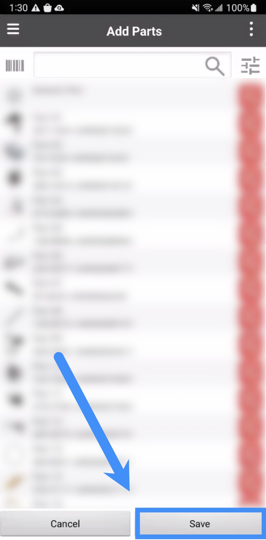 Repeat this process as many times as necessary until you have added all the needed parts. Once you are satisfied with the items entered, press the Save button from the Add Parts page: