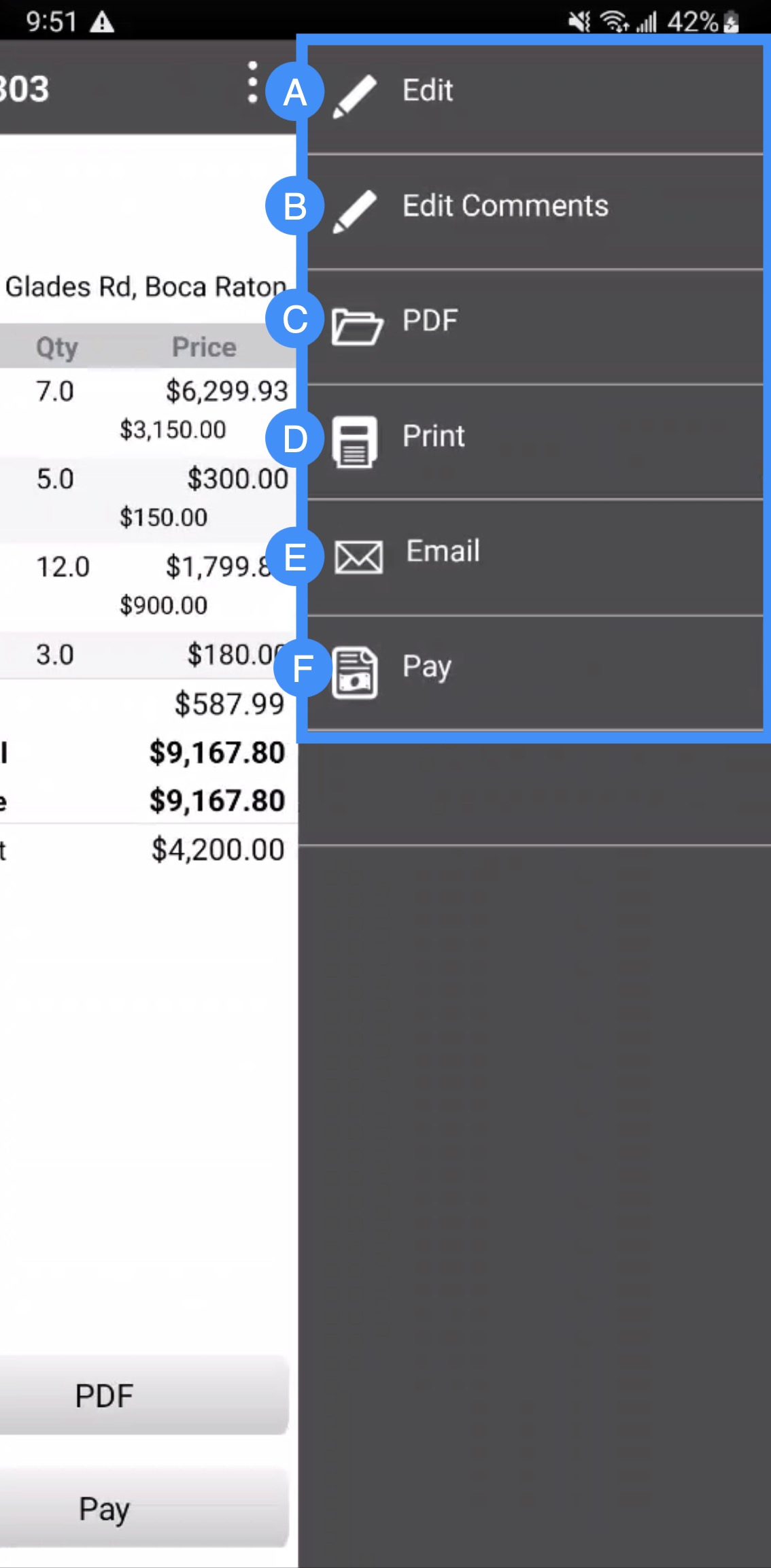 Print- Allows you to print the invoice from your mobile device.