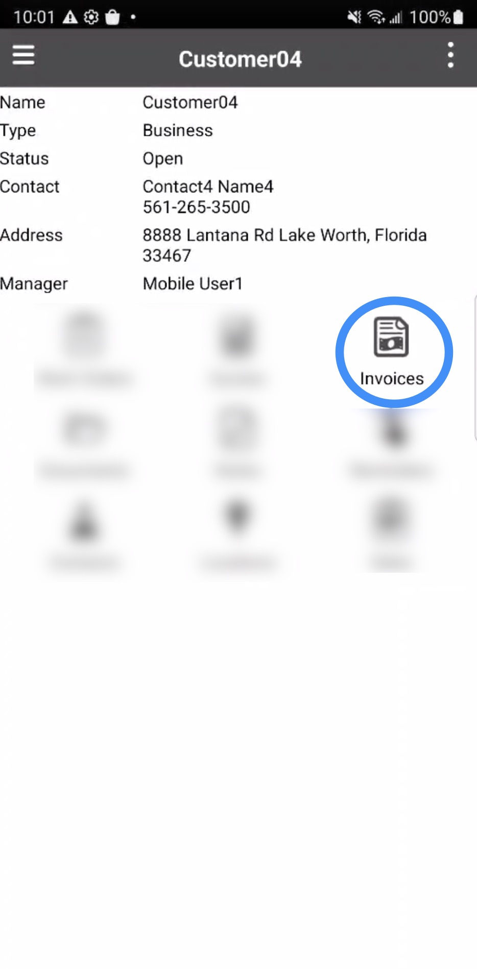 You can access a customer's list of invoices from the Customer feature. For more information on how to access this page, please see the Mobile Customer Layout page.