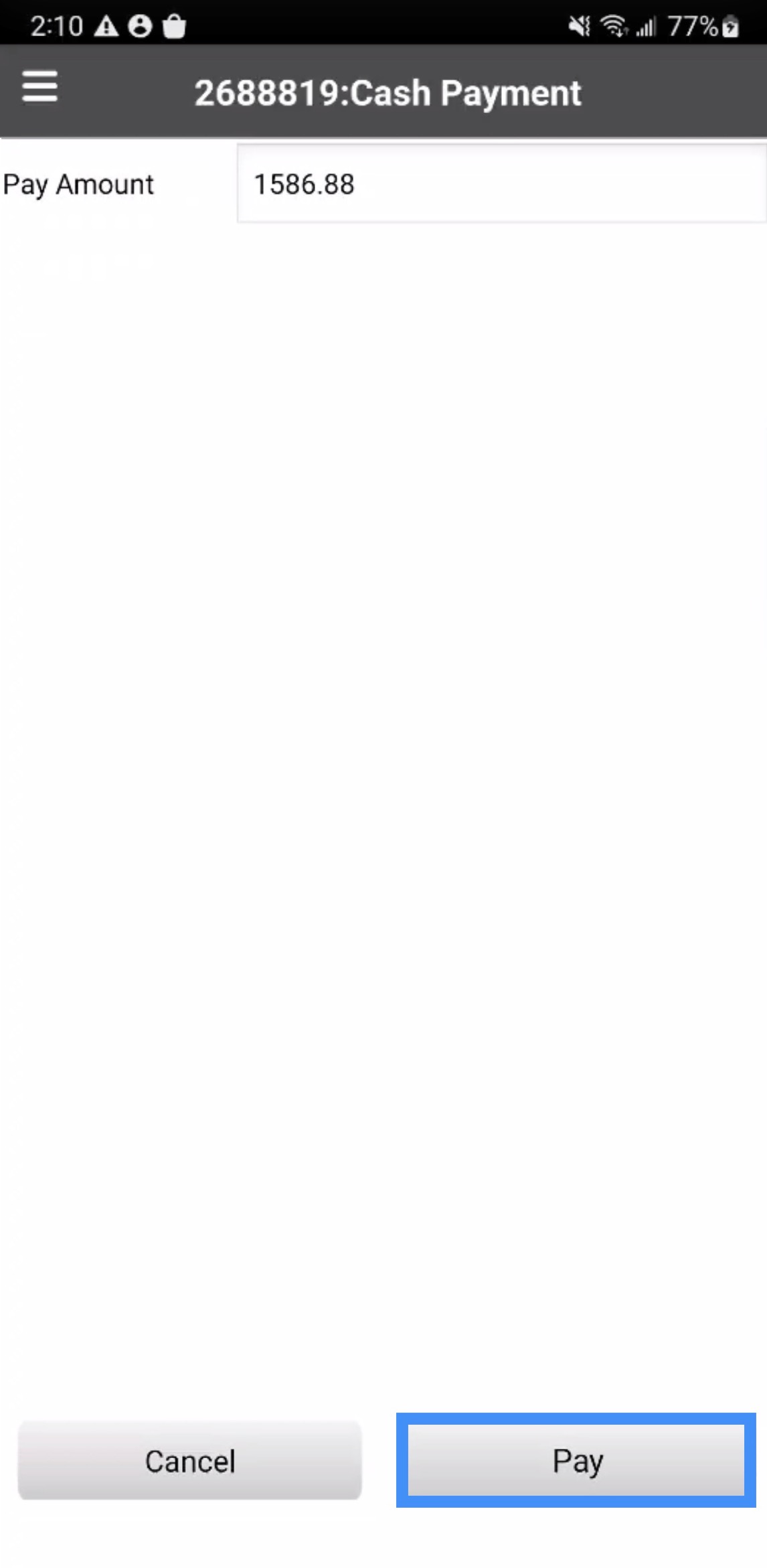 Input the payment amount. Once the payment amount is entered, press the Pay button to save the amount: