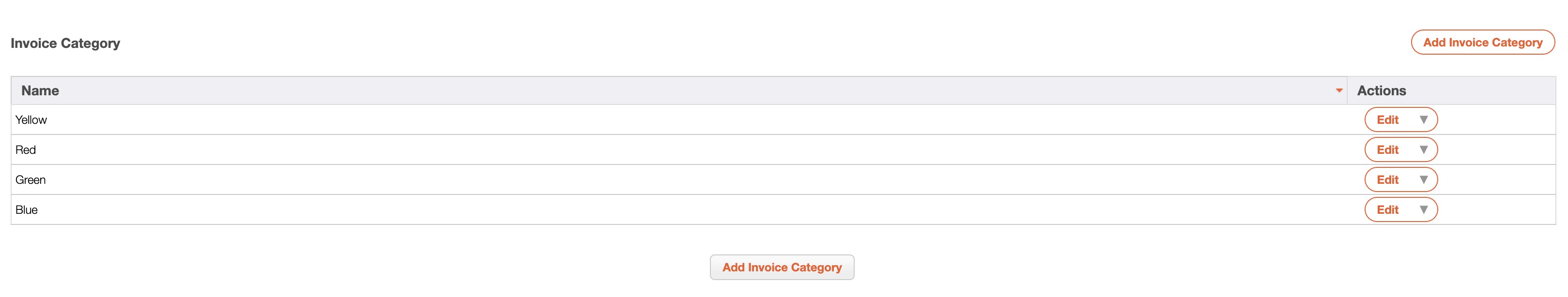 "Invoice Categories" can be used to categorize your invoices; some examples of different categories include billing, lease to own, etc.: