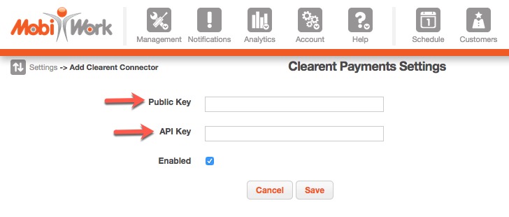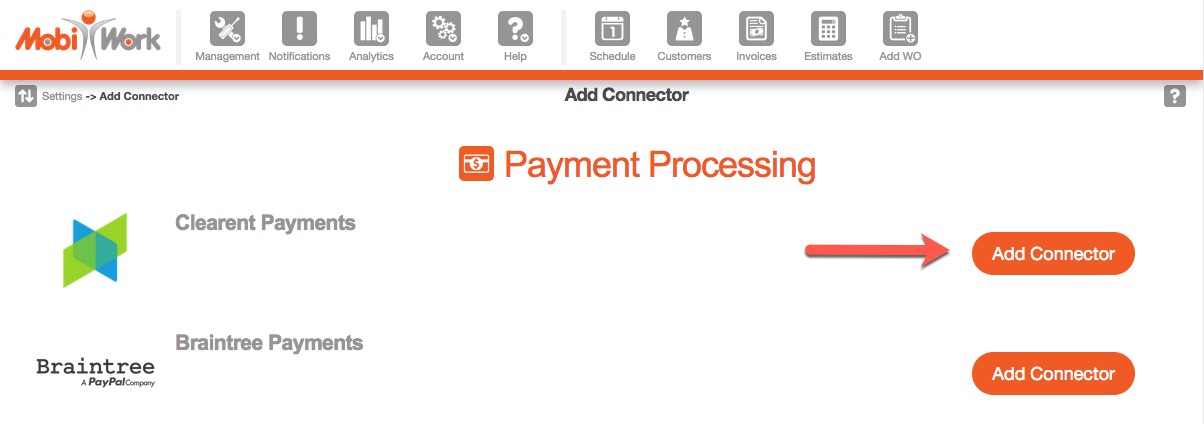 Note: MobiWork only allows one payment connector per account.