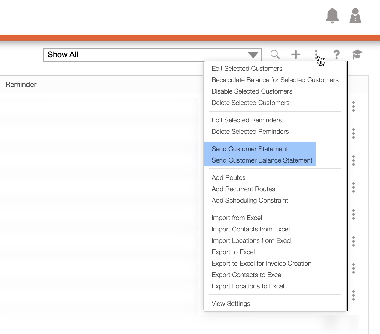 Please note that if you send statements through the Customers More Actions button, the statements will be sent to multiple customers: