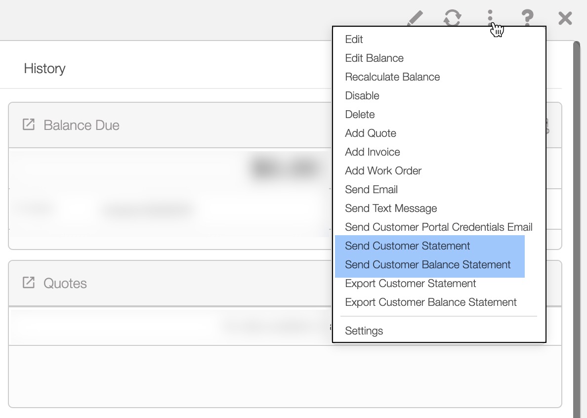 You will be able to send your customers their statement or statement balance either through the Customers More Actions button or through the View Customer pop-up window.