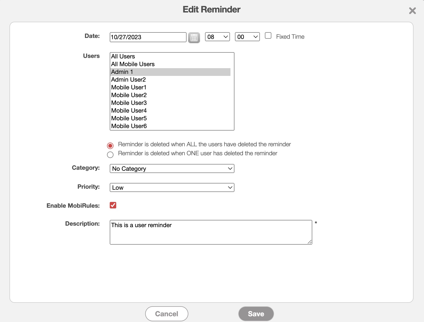 Regardless of the method you choose to edit a reminder the Edit Reminder pop-up window will appear: