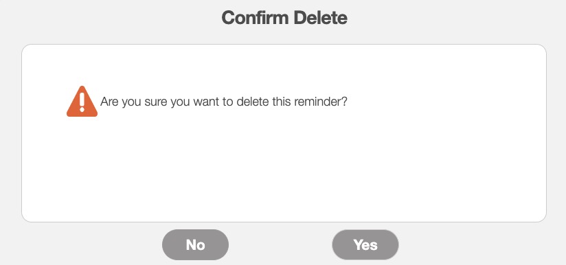 To confirm deletion, click on the Yes button; the reminders will then automatically be removed from the system.