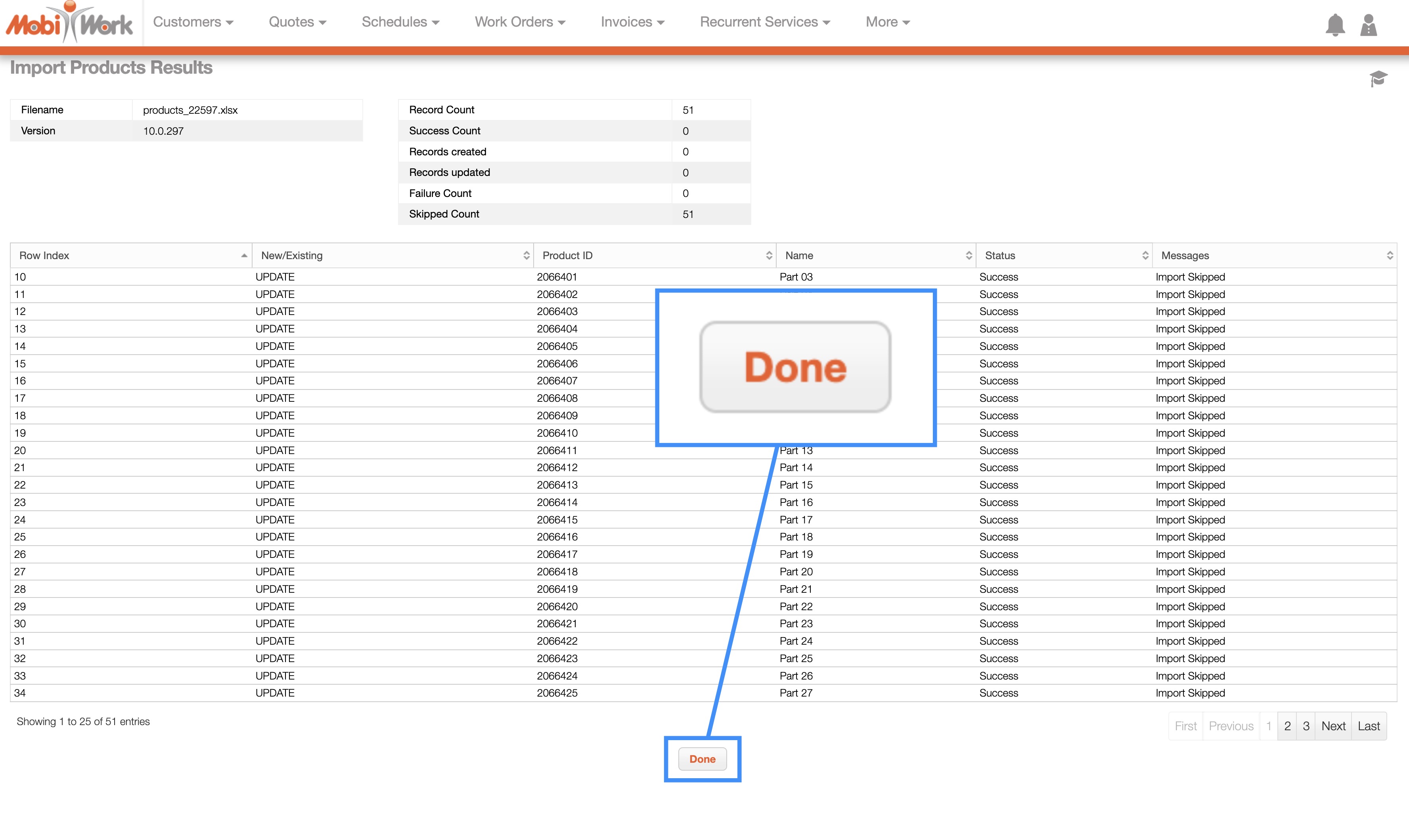 Once you are redirected to the Import Product Results page, click the Done button: