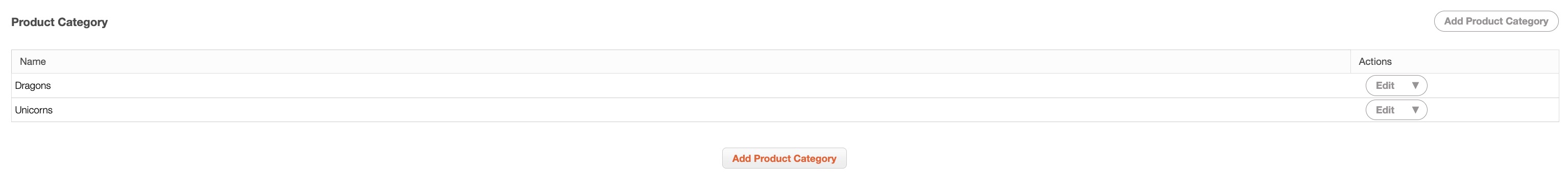 | "Actions" | Will allow you to edit or delete the product category |