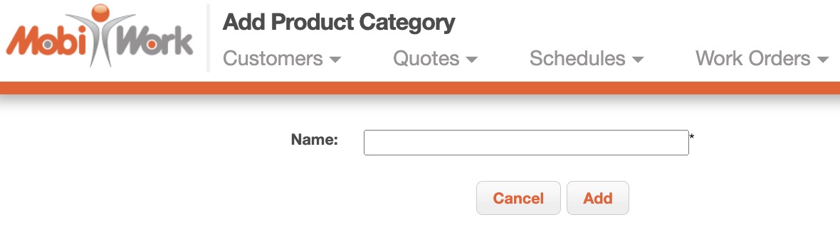 To add a new product category, click the Add button. You will then be redirected to the Add Product Category page where you can input the name of your new category: