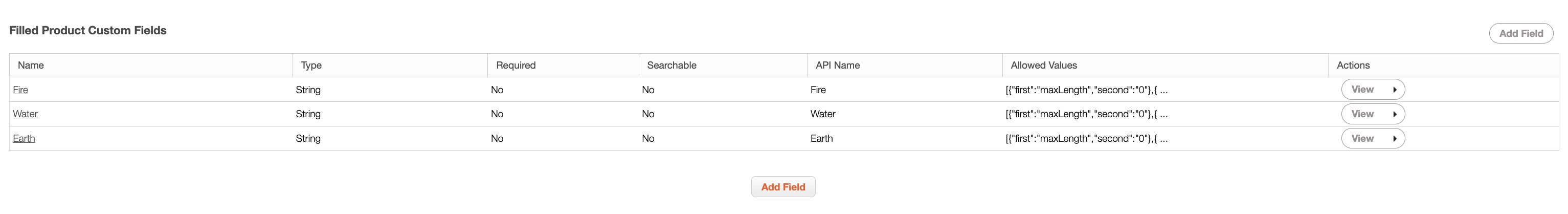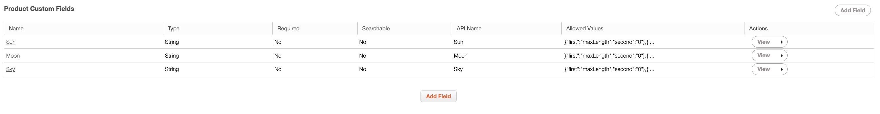 | "Actions" | Will allow you to view, edit, or delete the selected custom field. |