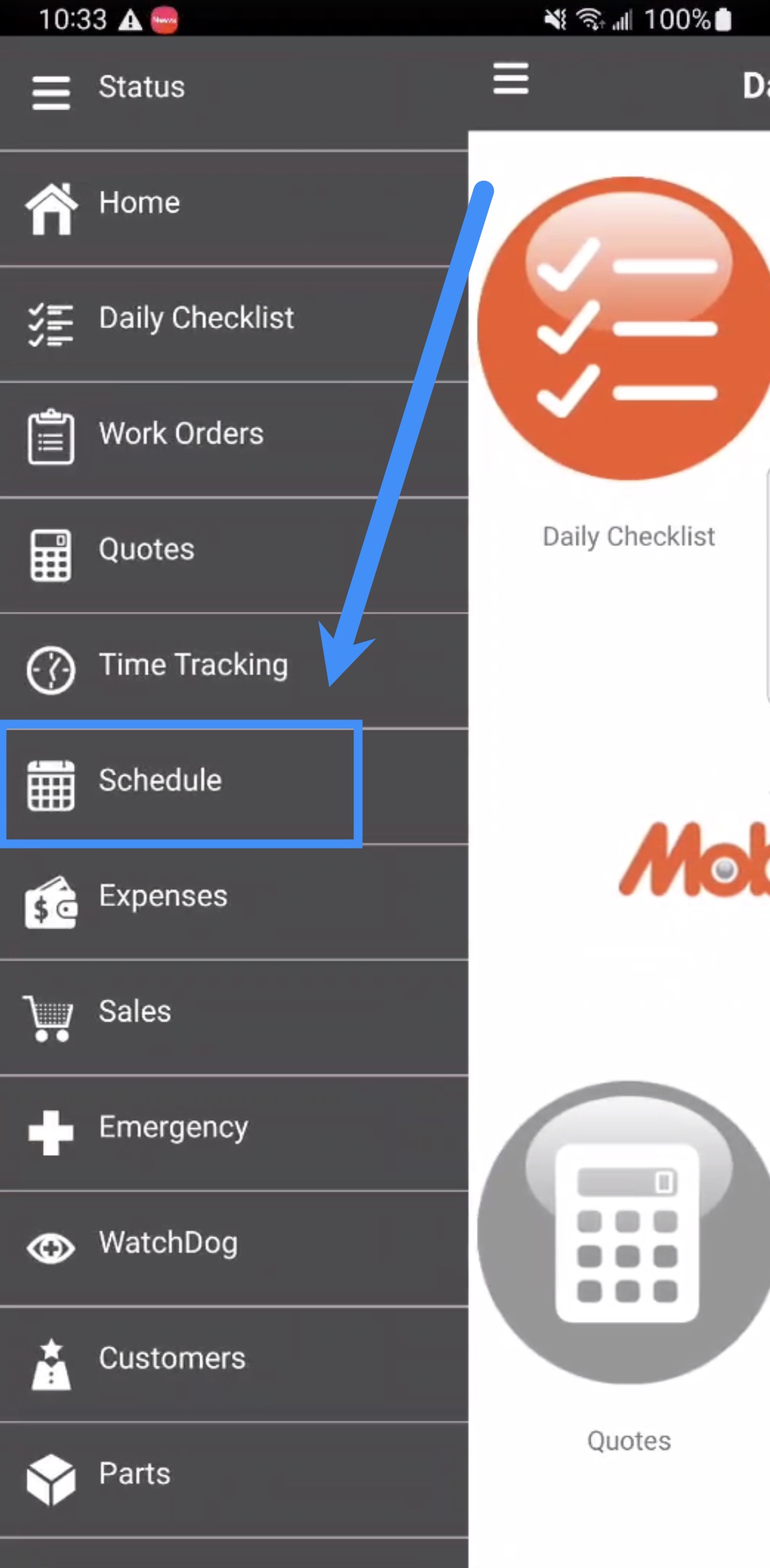 STEP 2: From the side menu, scroll down until you locate the Schedule button and then press on the button:
