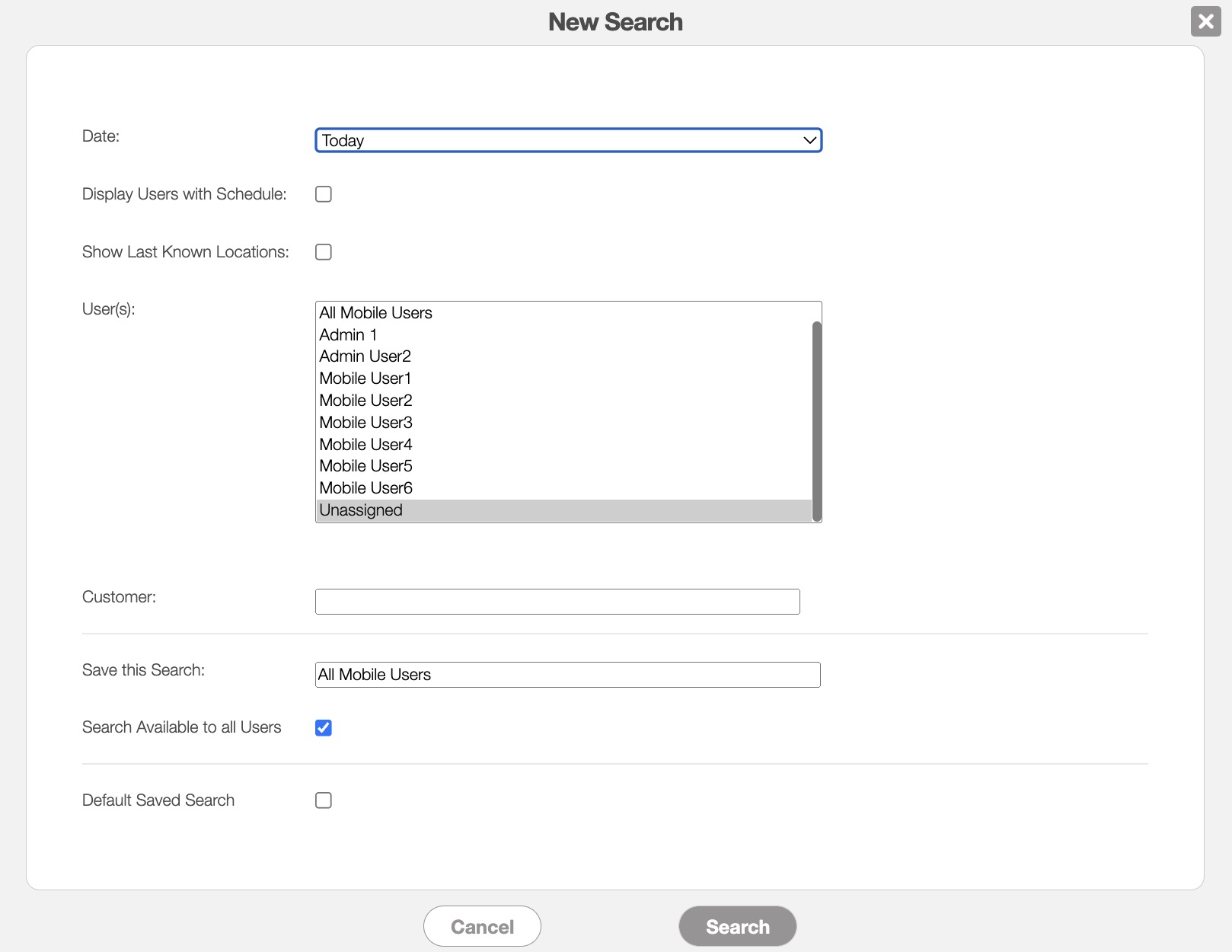 | "Display Users with Schedule" | Will only display users with a schedule (e.g., if they have been assigned a work order). |