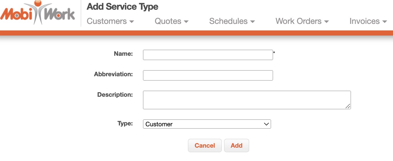To add a new service type, click the Add Service Type button and you will be redirected to the Add Service Type page: