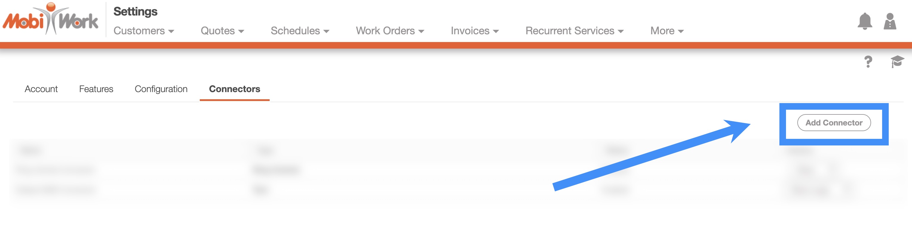 Add Connector- Will allow you to add a new connector to your MobiWork account